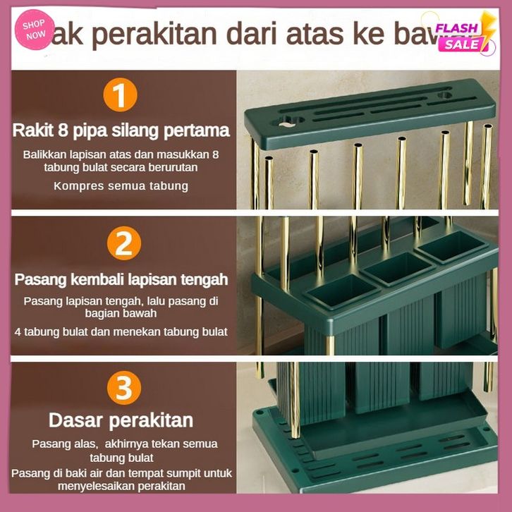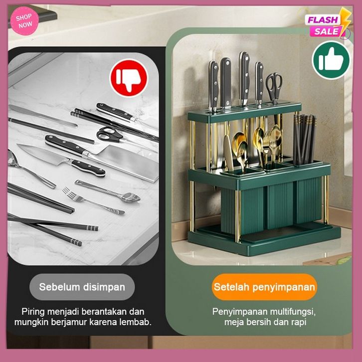 Tempat Pisa Dapur Pengatur Perkakas Pisa Multifungsi Sumpit Dapat Dikuras Sendok Garpu Wadah Penyimpanan Baki Rak Peny