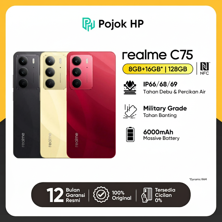 Realme C75 RAM 8/128GB Up To 16GB Shock Resistance 6000mAh Battery Power NFC Lengkap