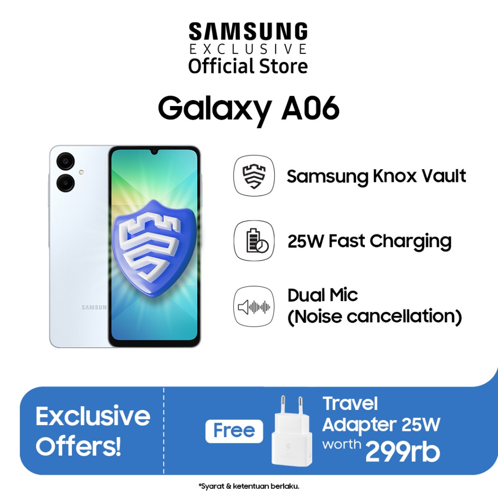 Samsung Galaxy A06 4/64GB - Light Blue | Baterai 5.000 mAh | 25W Fast Charging