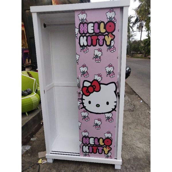 lemari pintu 2 sleding minimalis karakter gantungan ambalan kaca kunci kaki triplek uk 90x200x45