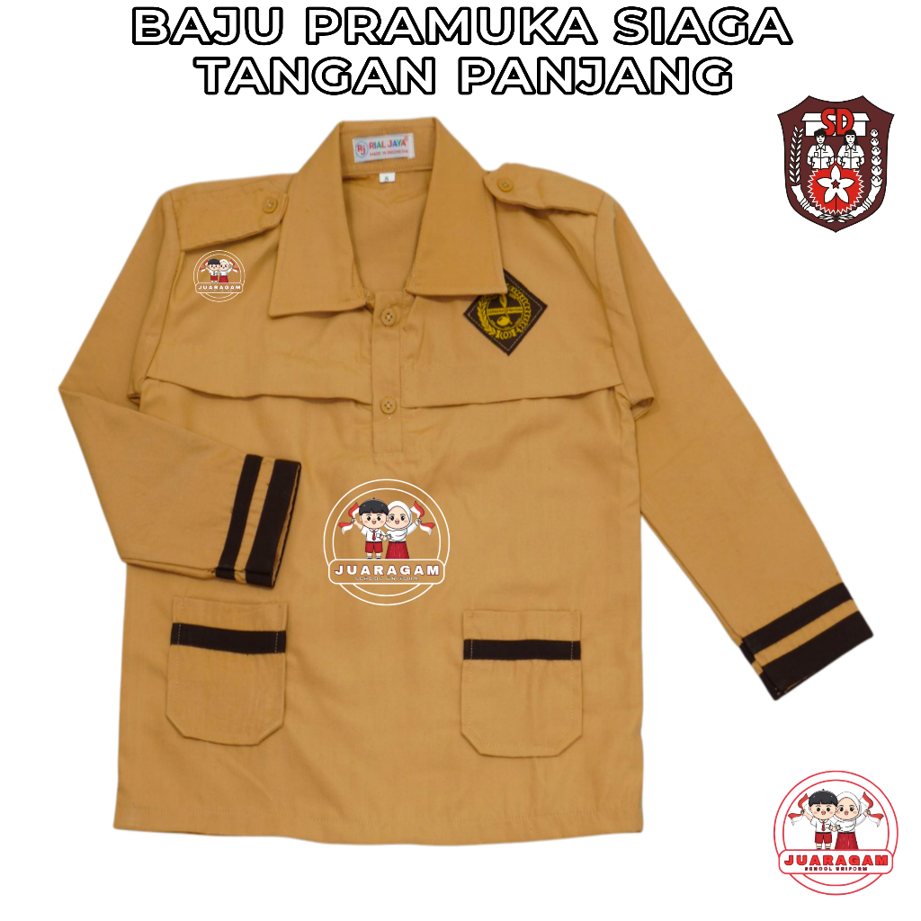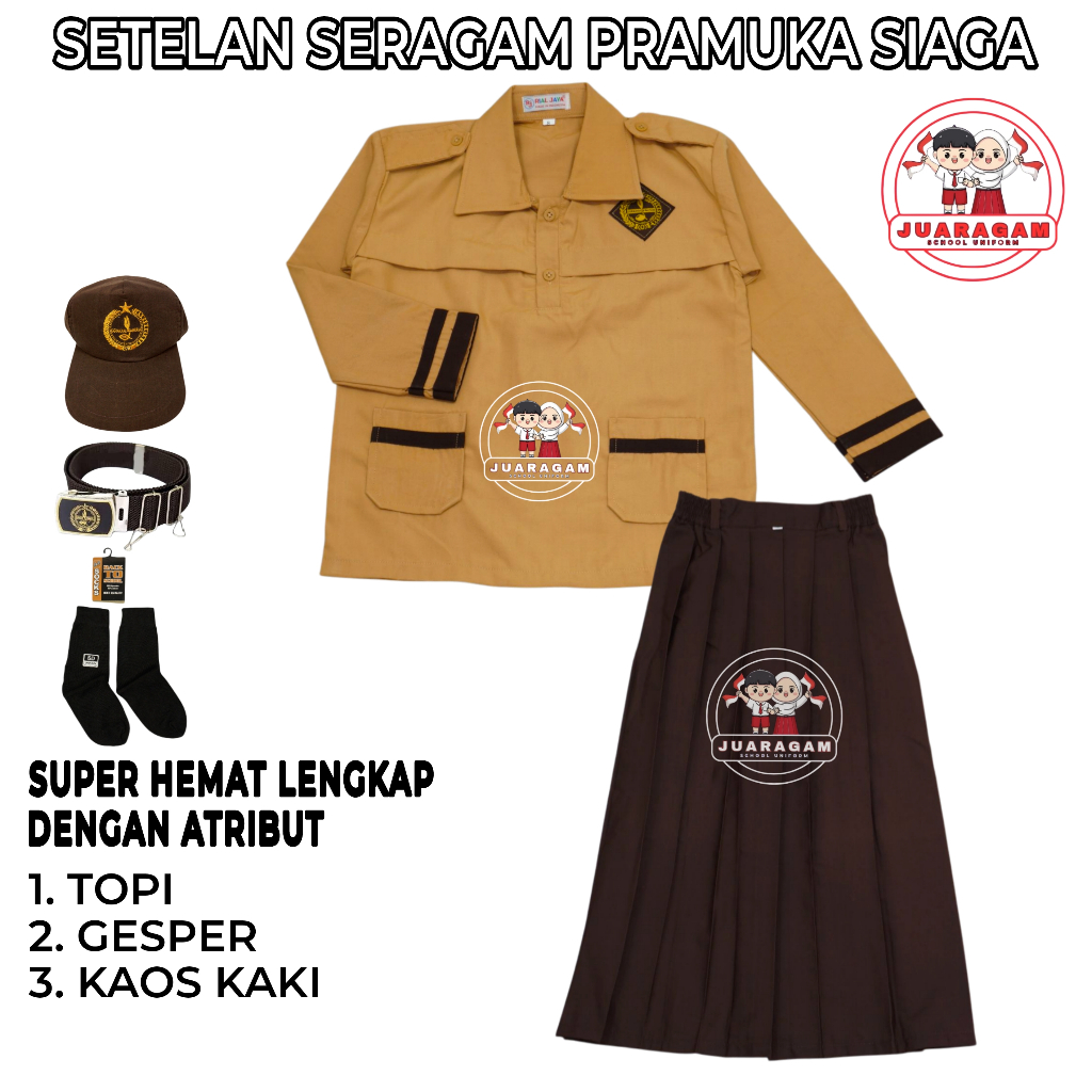 JUARAGAM Setelan Super Lengkap Seragam Pramuka Siaga Sekolah SD Perempuan Baju Panjang Rok Panjang Kelas 1-6 SD