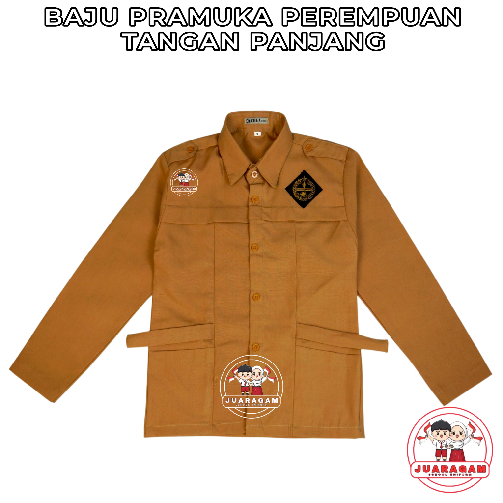 JUARAGAM Setelan Super Lengkap Seragam Pramuka Sekolah SD Perempuan Baju Panjang Rok Panjang Kelas 1-6 SD