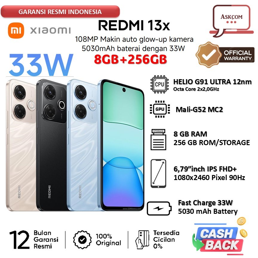 XIAOMI REDMI 13X 8GB 256GB 6.79inches 90Hz 5030 mAh 33W NFC GARANSI RESMI