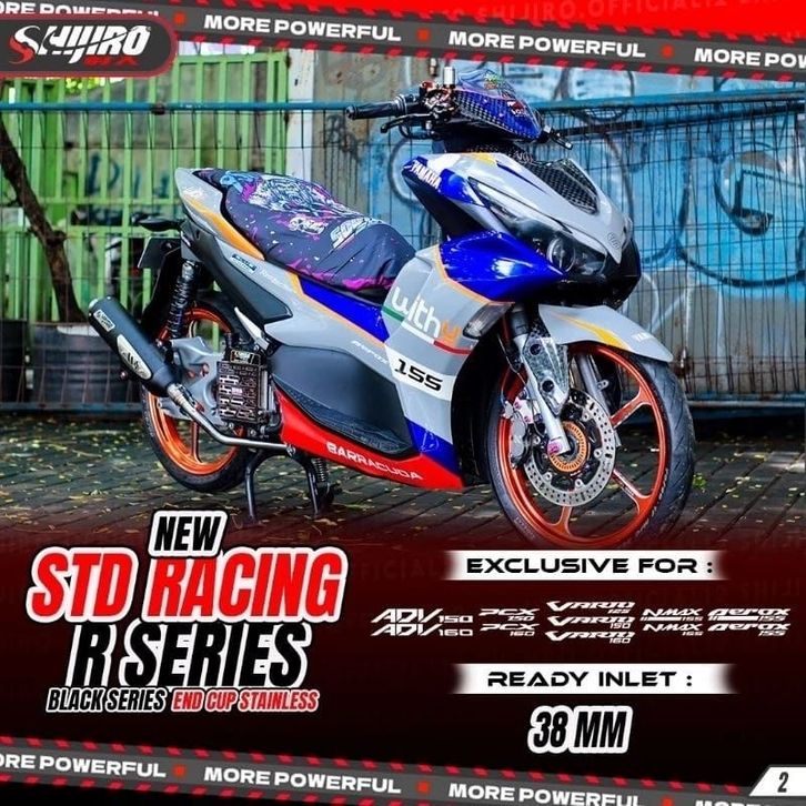 Knalpot Standar Racing Shijiro New R Series N Max Aerox Lexy New N Max Vario125/150/160 Pcx150/160 Adv150/160 Stylo160