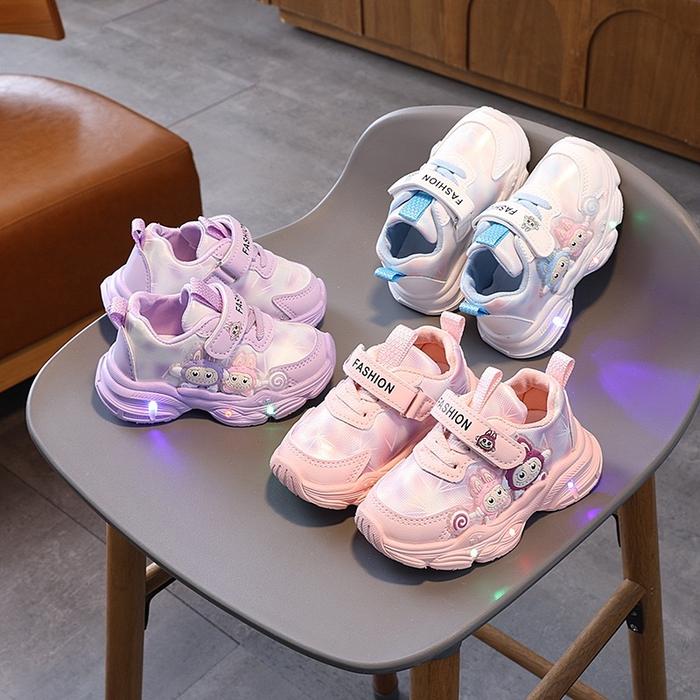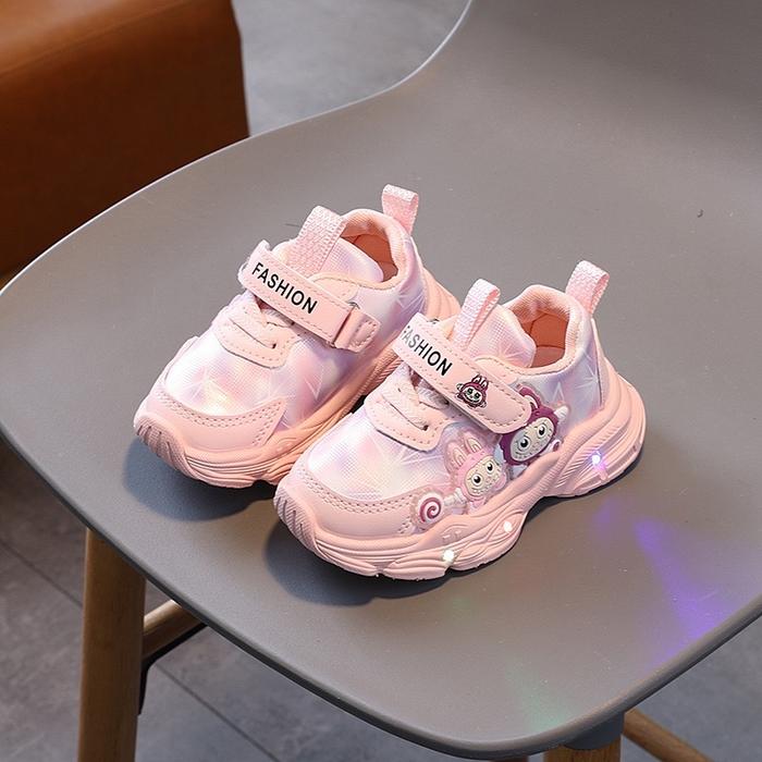 TERLARIS AXELINESEPATU SNEAKERS ANAK PEREMPUAN LABULABU LED 2130 SEPATU ANAK PREWALKER PAUD BABYPINK, 21