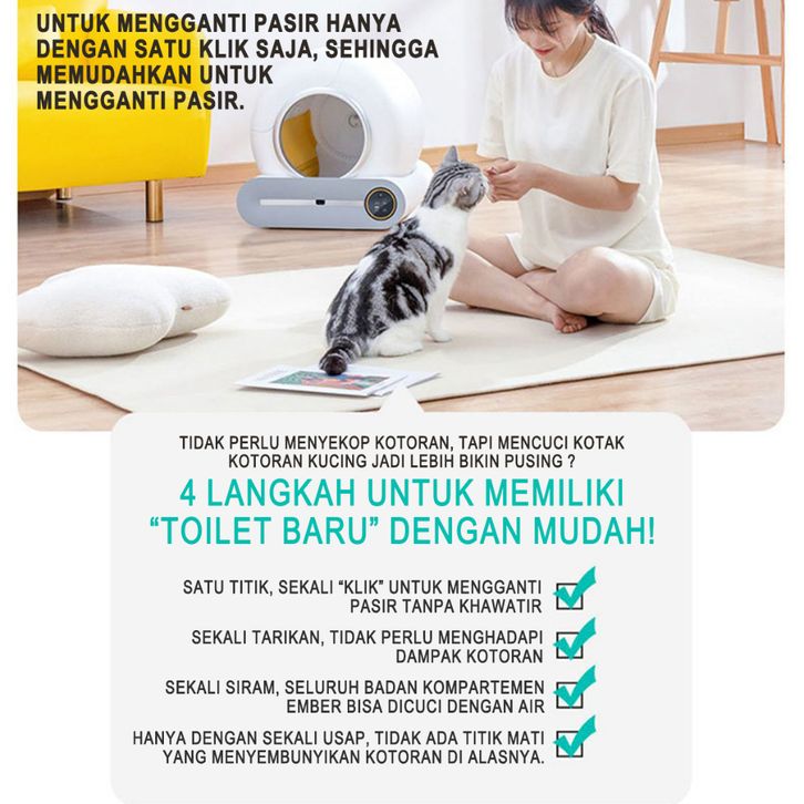 LITTER BOX OTOMATIS WIFI 2.4G LITTER BOX KUCING 65L AUTOMATIC SELF CLEANING APP CONTROL LED SCREEN CAT TOILET BIG SIZE