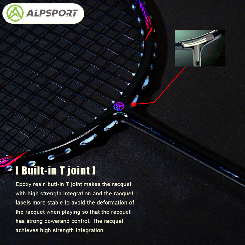 ALPSPORT BBQ2.0 Cincin Penyerap Guncangan Nilon + Bingkai Pelangi 8U G5 30Lbs Raket Bulutangkis Ofensif Yang Ringan Hita