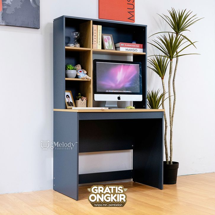 Melody Furniture - Meja Keja Belajar Kantor dengan Rak Buku Serba.a BUZZ DESK 90 cm - GREY BIANCO