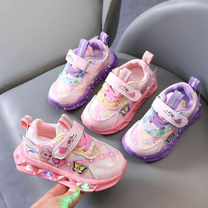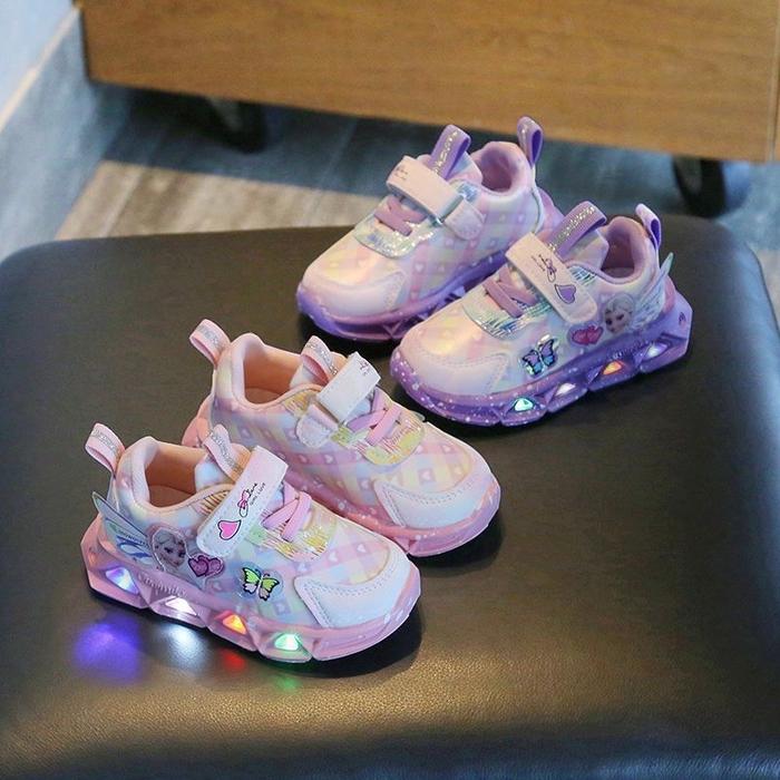 TERLARIS AXELINESEPATU SNEAKERS ANAK PEREMPUAN LED FROZEN ELSA SQUARE LOVE 2130UNGU, 21