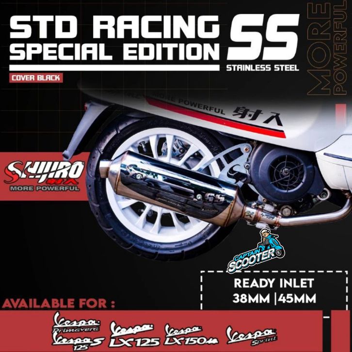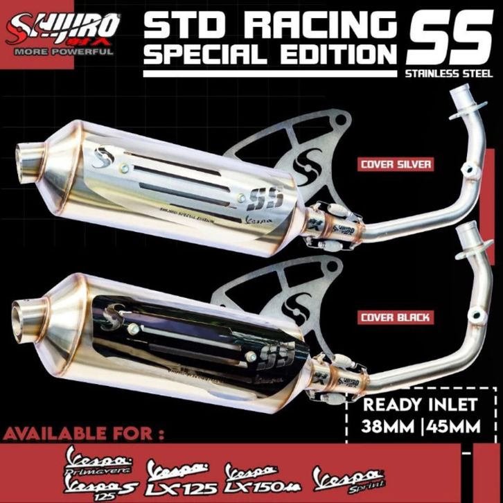 SHIJIRO Knalpot Std Standar Racing SS Vespa Sprint Primavera GTS LX S LXV 2V 3V 4V Iget