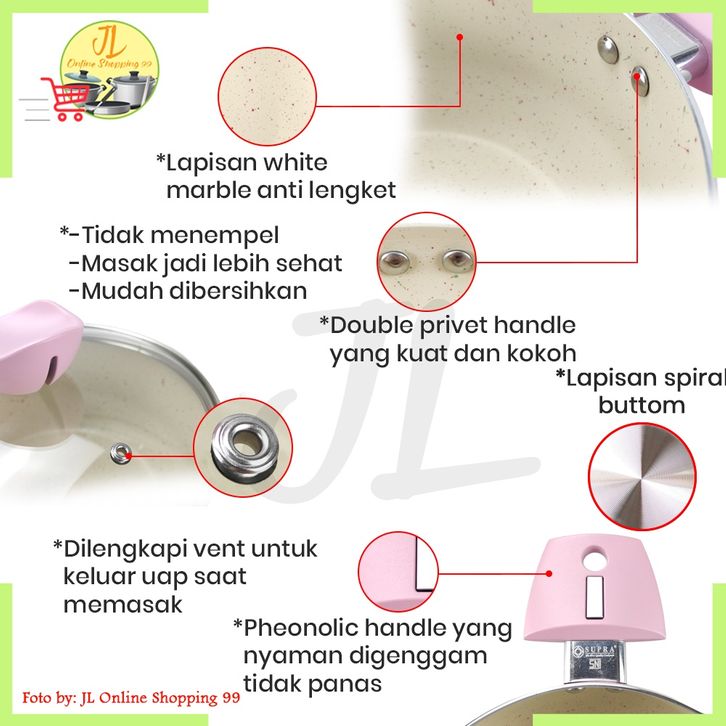 12pcs cookware set white marble pastel Pink / panci set supra anti lengket