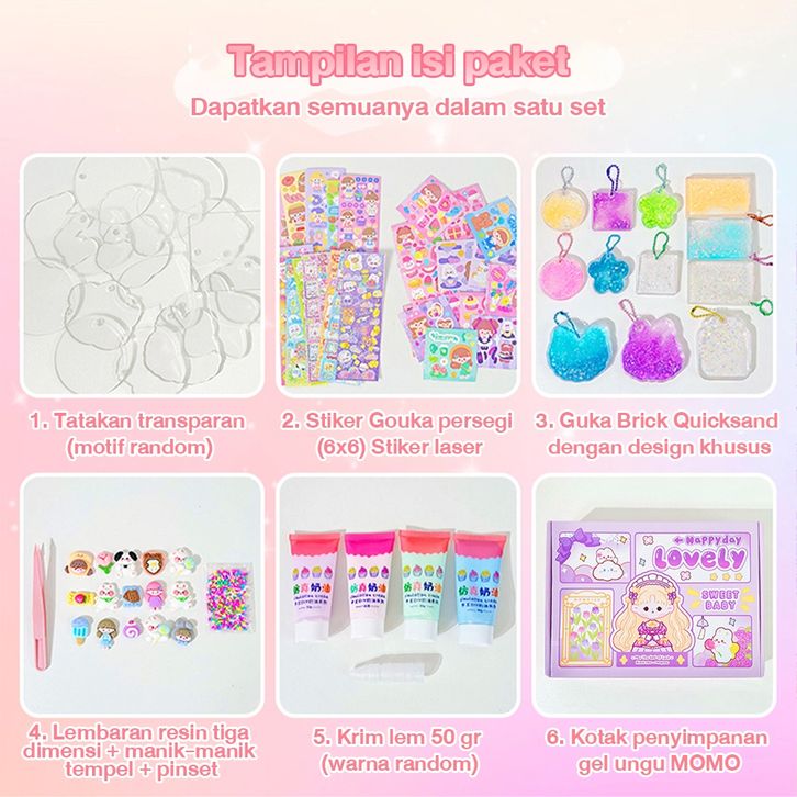 Mainan Anak Perempuan Terbaru DIY Gantungan Kunci Pasir Guka Set DIY Keychain Stiker Deco Cream Set Mainan Anak