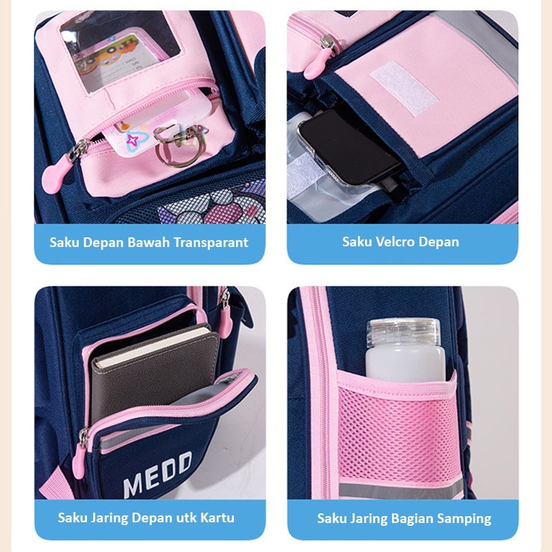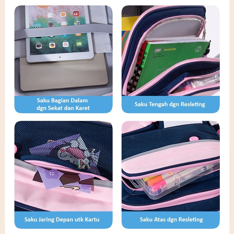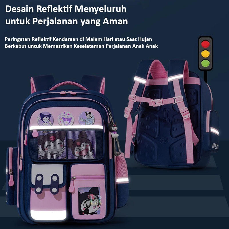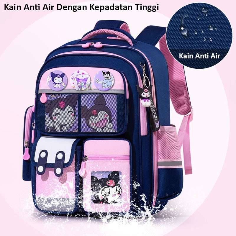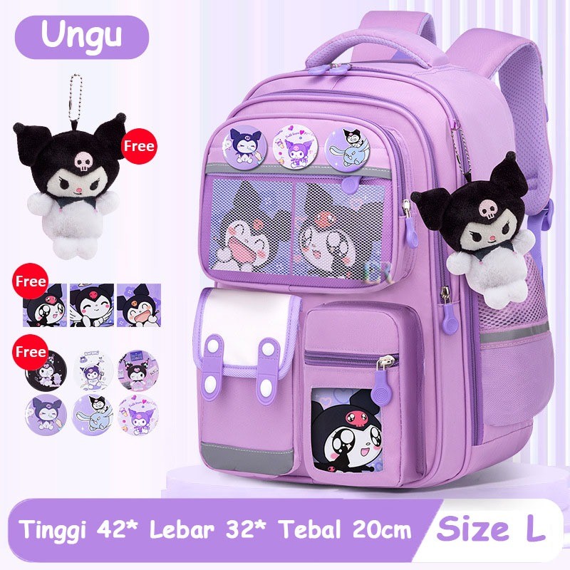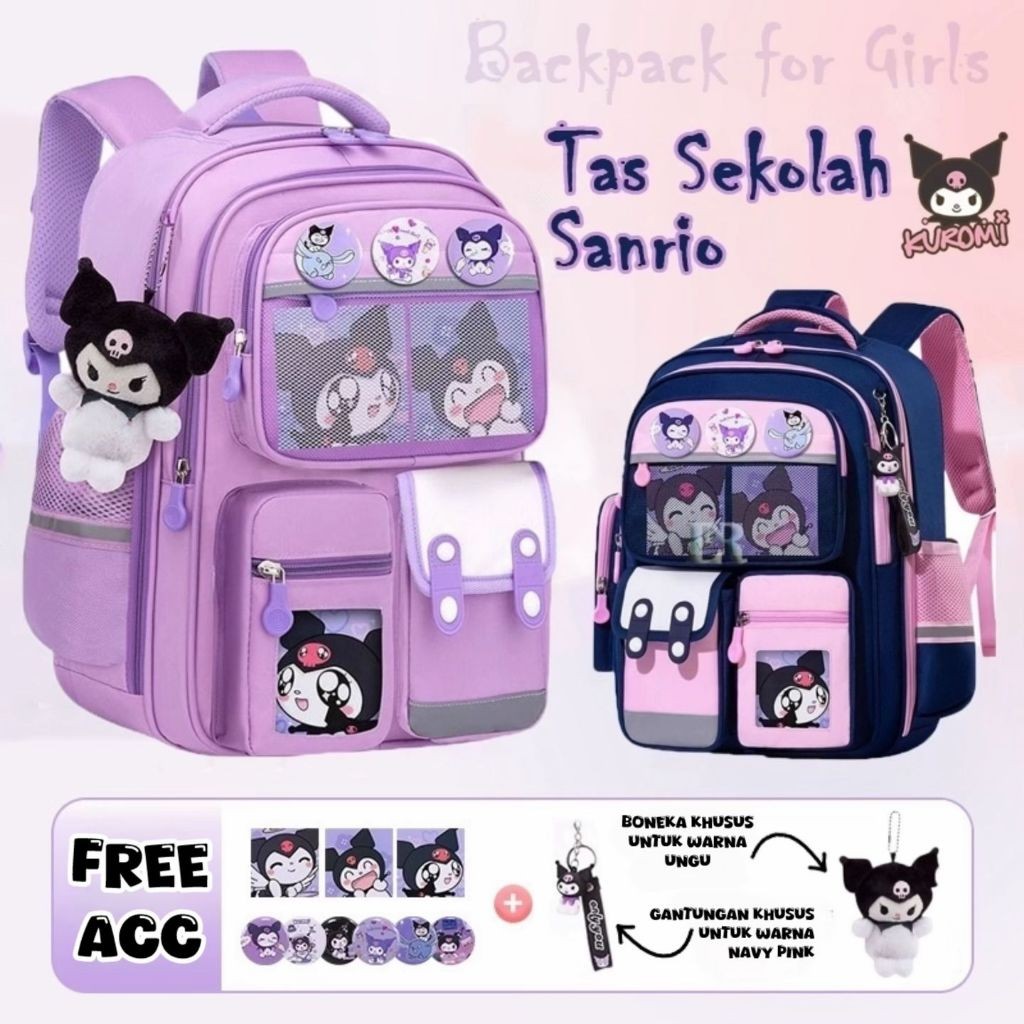 Tas Sekolah Untuk Anak Perempuan Free Gantungan / Boneka 6Pcs Pin Bros 3Pcs Kartu Dengan Tema Sanrio Kuromi Ransel Impor