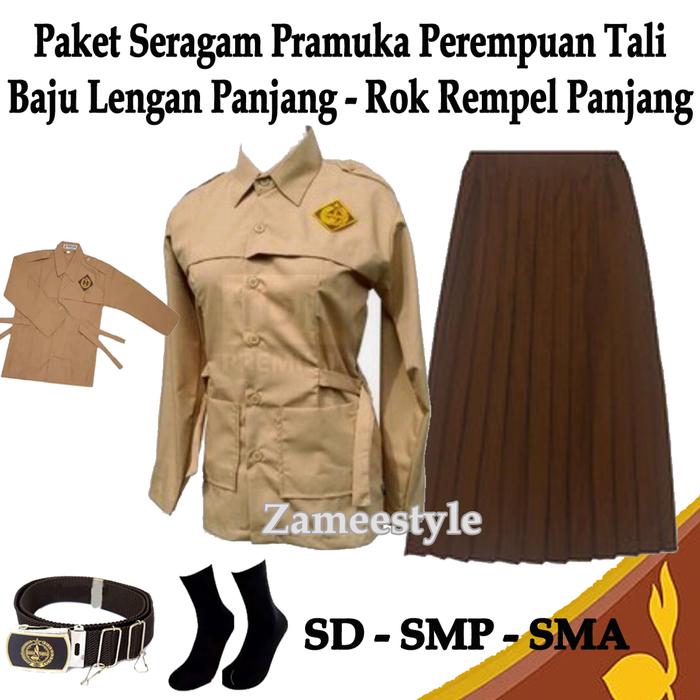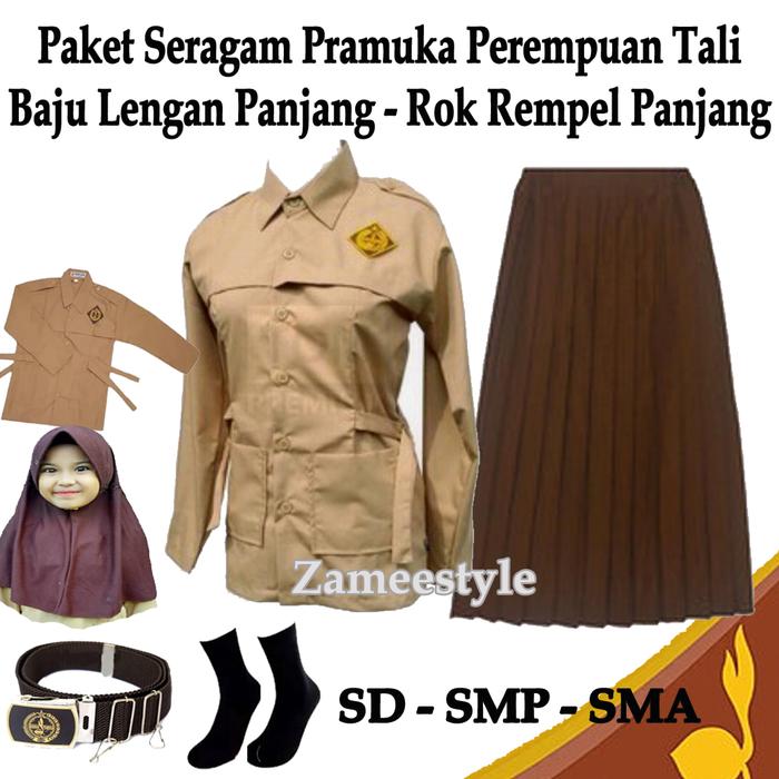 TERLARIS PAKET LENGKAP SETELAN SERAGAM ANAK SEKOLAH PRAMUKA PEREMPUAN LENGAN PANJANG TALI SD SMP SMAHANYA BAJ