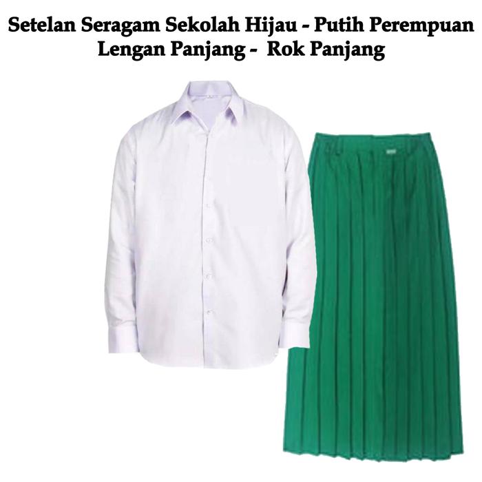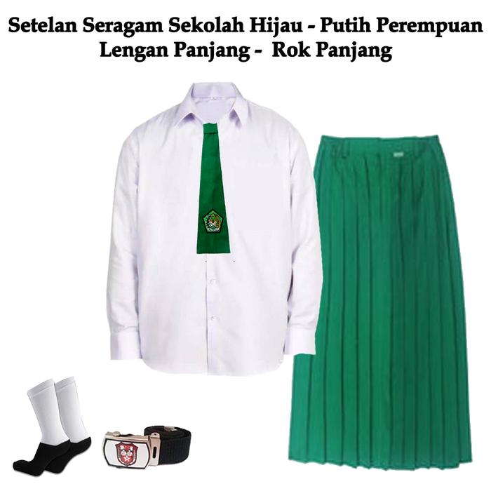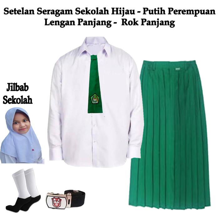 TERLARIS PAKET LENGKAP SETELAN SERAGAM ANAK SEKOLAH MADRASAH MI HIJAU PUTIH PEREMPUAN BAJU PANJANG DAN ROK PANJ