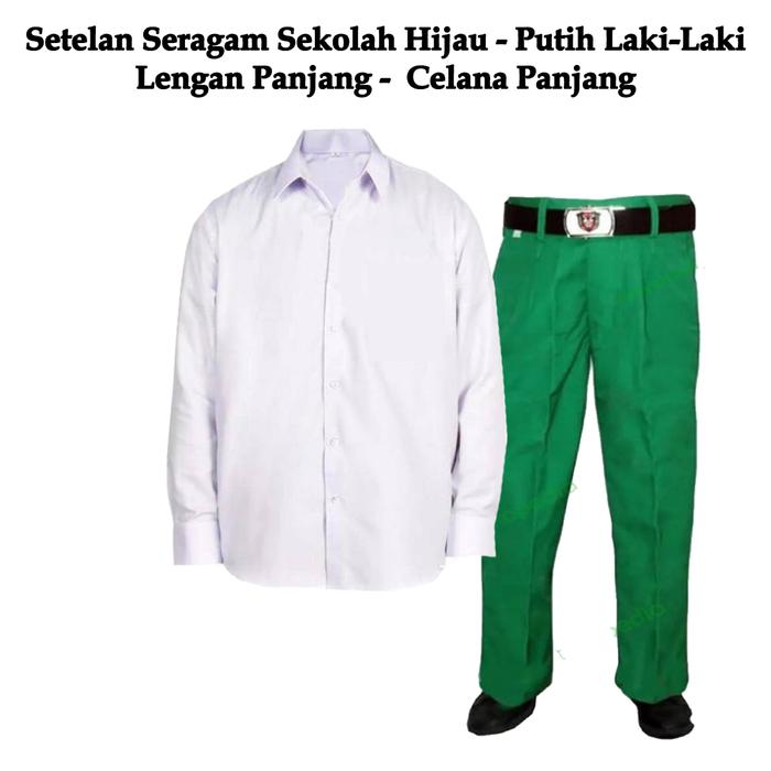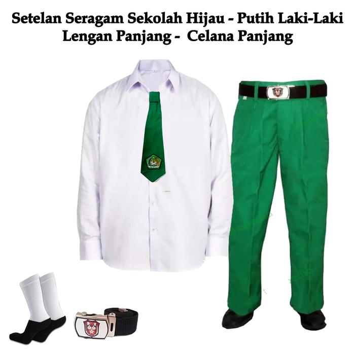 TERLARIS PAKET LENGKAP SETELAN SERAGAM ANAK SEKOLAH MADRASAH MI HIJAU PUTIH LAKILAKI BAJU PANJANG DAN CELANA PA