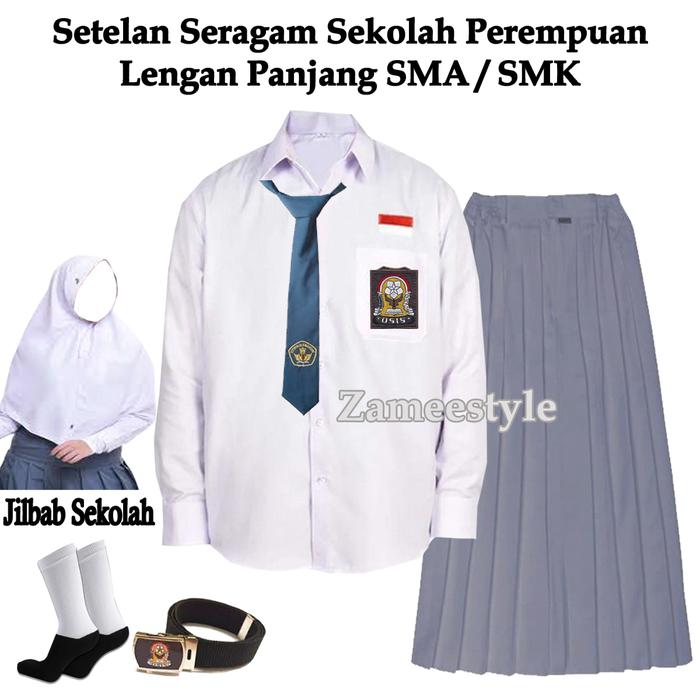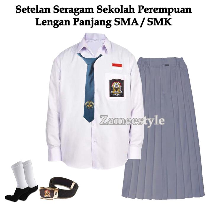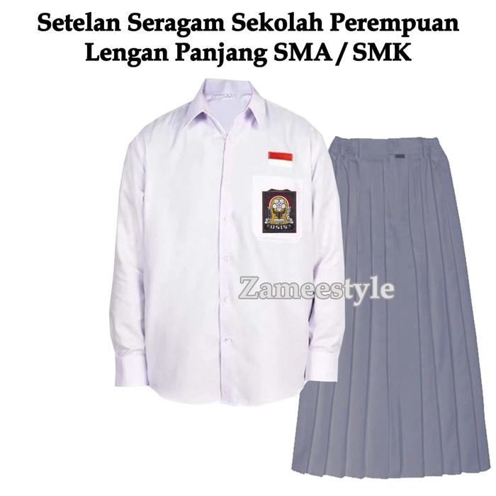 TERLARIS PAKET LENGKAP SETELAN SERAGAM ANAK SEKOLAH SMASMK ABU PUTIH PEREMPUAN LENGAN PANJANGHANYA BAJU+ROK,