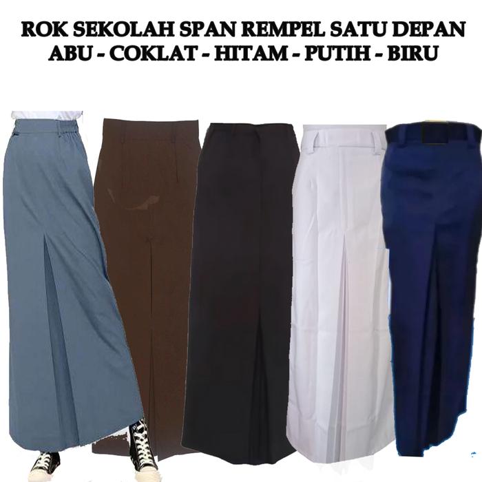 TERLARIS ROK PANJANG SPAN REMPEL SATUBELAH DEPAN WARNA ABUCOKLATHITAMPUTIHBIRU SERAGAM SEKOLAHSPAN