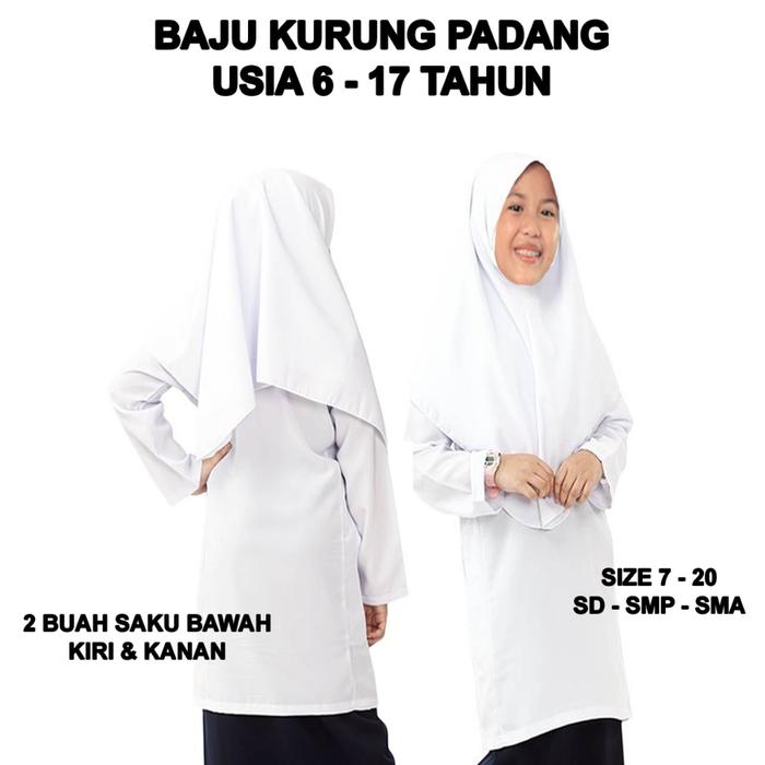 TERLARIS ATASAN SERAGAM SEKOLAH BAJU KURUNG PADANG UNTUK SDSMPSMA WARNA PUTIH POLOSSIZE 7