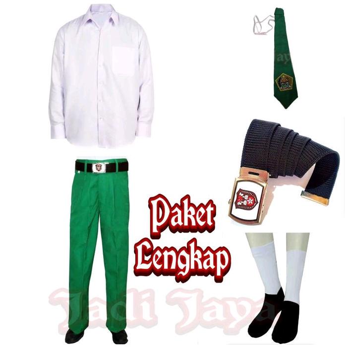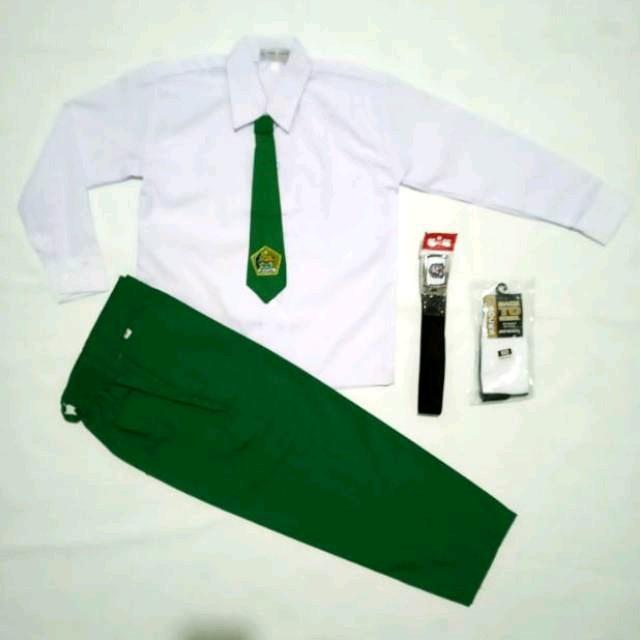 TERLARIS 1 SET SERAGAM SEKOLAH SDMI LAKI HIJAU PUTIH BAJU PANJANG CELANA PANJANGSETELAN MI LAKI BAJU PANJANG