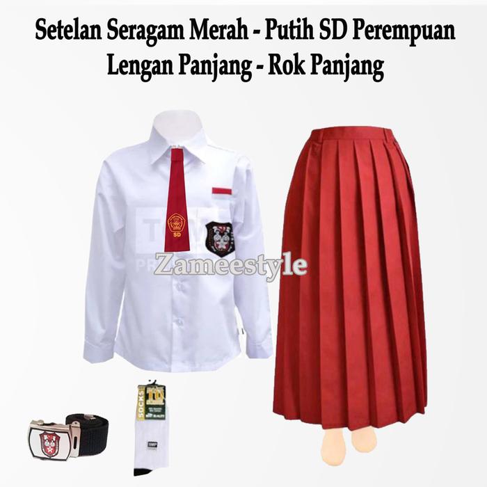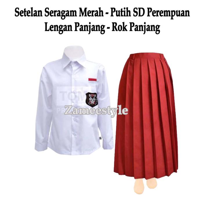 TERLARIS PAKET LENGKAP SETELAN SERAGAM ANAK SEKOLAH MERAH PUTIH PEREMPUAN BAJU PANJANG DAN ROK PANJANG KELAS 16