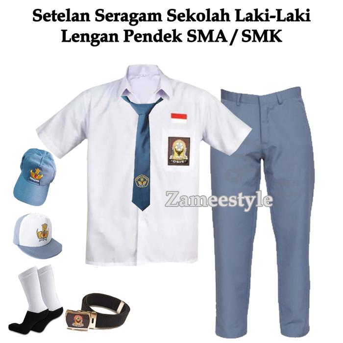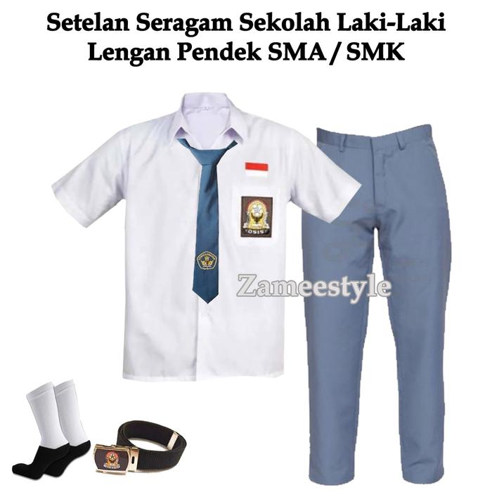 TERLARIS PAKET LENGKAP SETELAN SERAGAM ANAK SEKOLAH SMASMK ABU PUTIH LAKILAKI LENGAN PENDEKHANYA BAJU+CELANA,