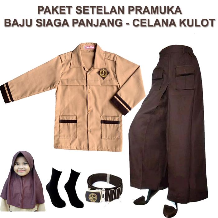 TERLARIS SETELAN SERAGAM SEKOLAH PRAMUKA SIAGA PEREMPUAN LENGAN PANJANG DAN CELANAROK KULOTTANPA KERUDUNG, 6