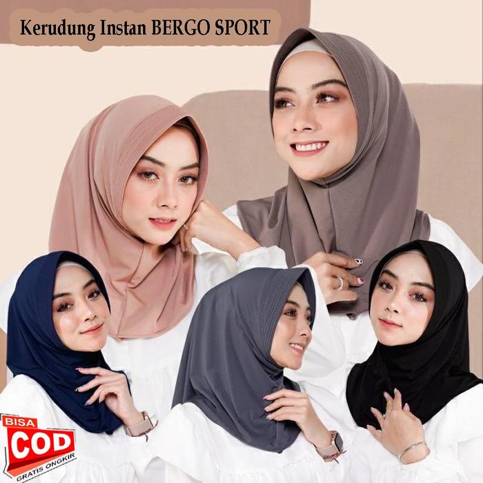 TERLARIS HIJAB ANTI RIBET KERUDUNG INSTAN BERGO PET BAHAN JERSEY MODEL SPORTPUTIH