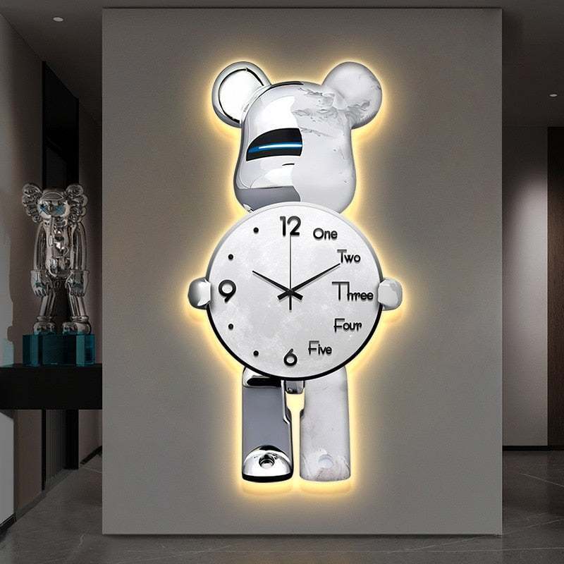 ZC 4180cm / 3160cm Jam Dinding LED Diam Ruang Tamu Seiko Jam Lukisan Dekoratif Beruang Kekerasan Gaya Pencahayaan