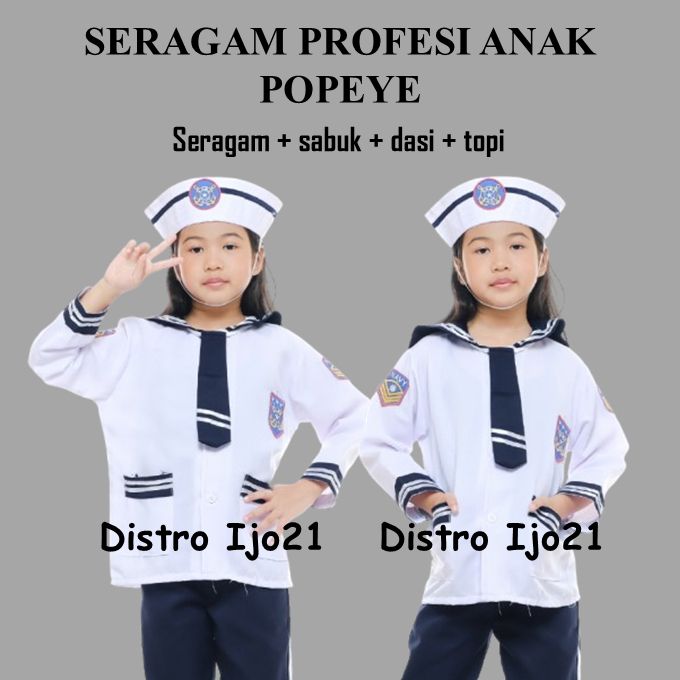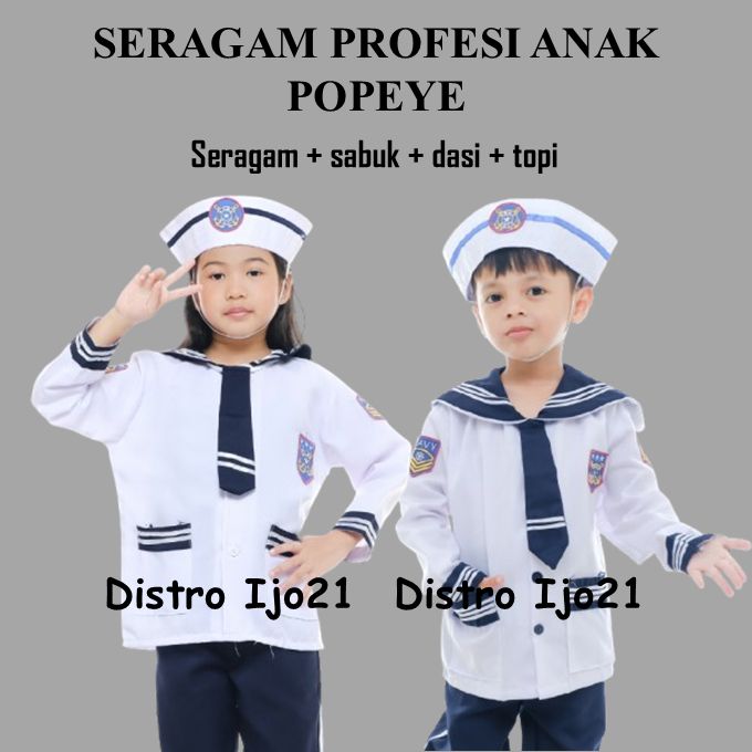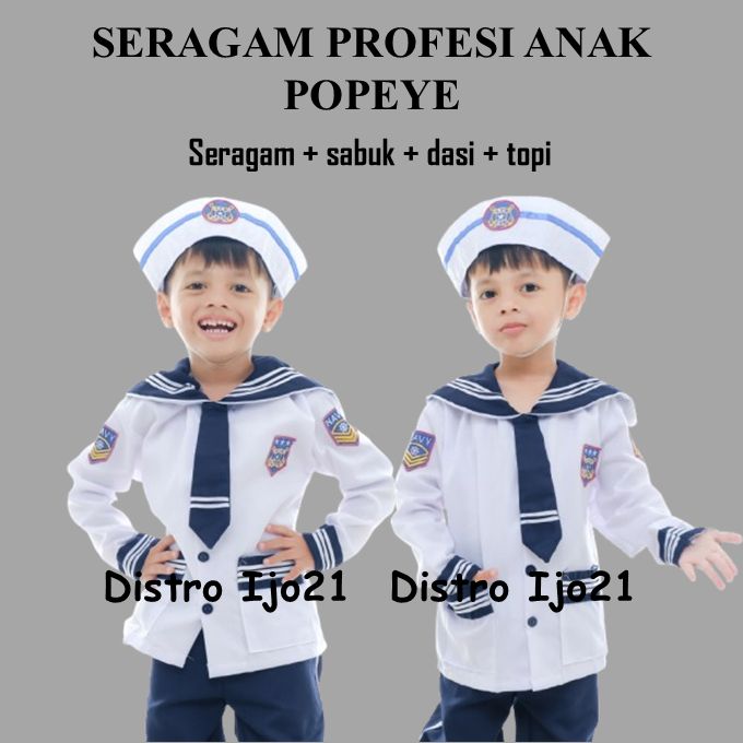Baju Seragam Pelaut POPEYE Anak Laki Laki Perempuan Baju Seragam Profesi Anak Kostum Karnaval Anak