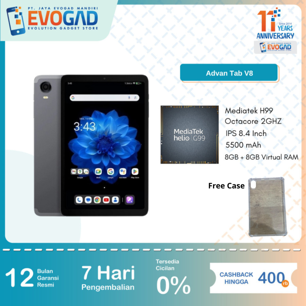 Advan V8 8/128GB, Mediatek G99 IPS 1920*1200 ANDROID 14 | Garansi Resmi Advan Indonesia 1 Tahun