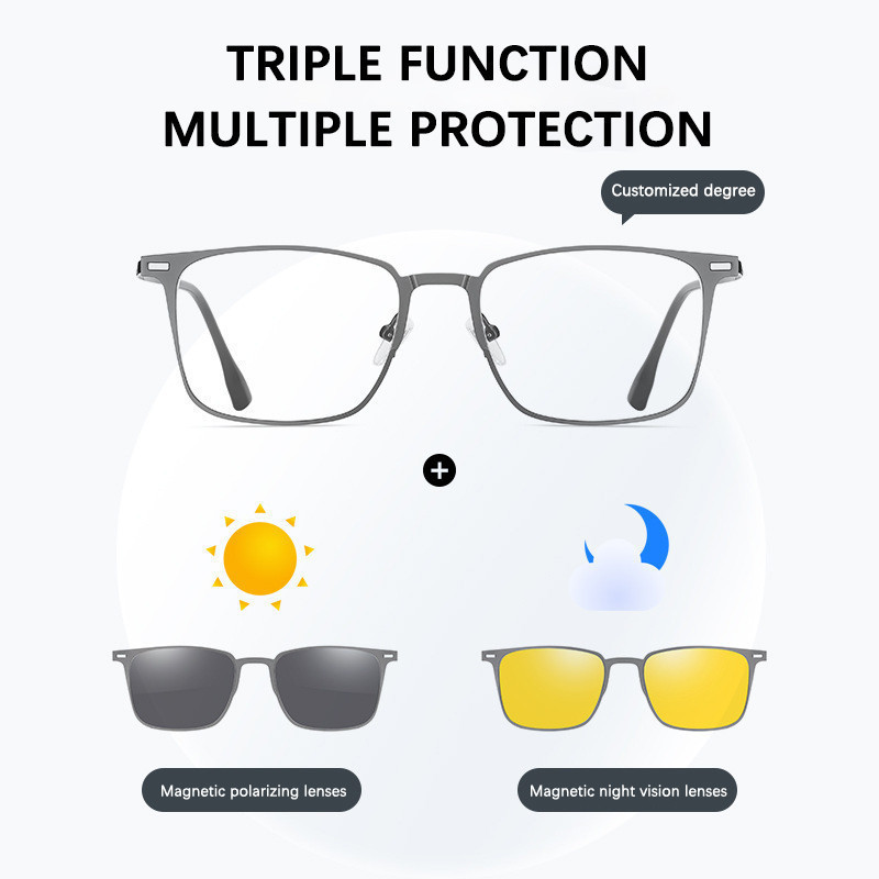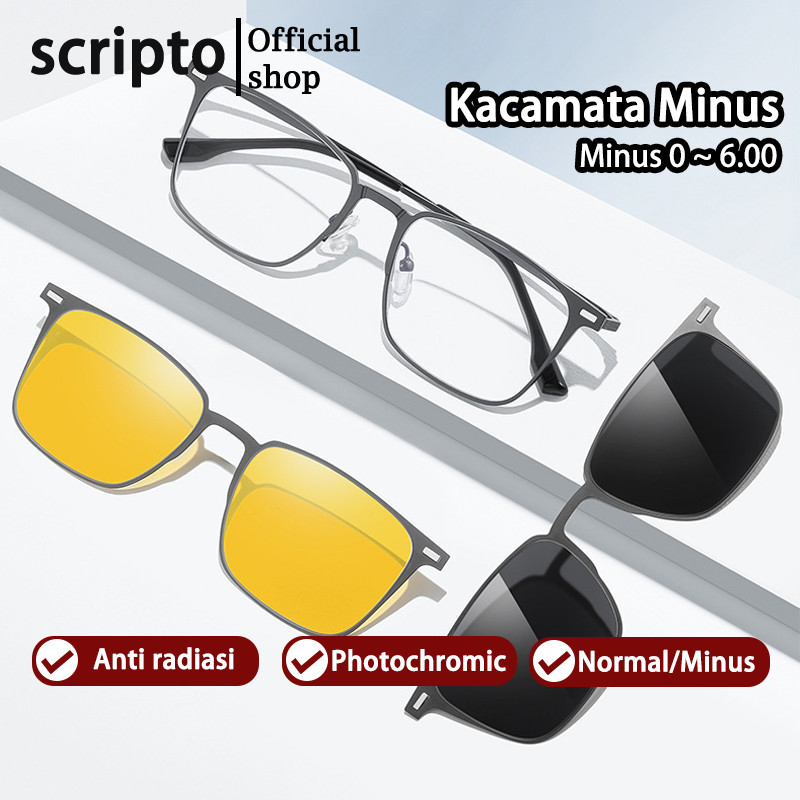Scripto Kacamata Clip On Polarized Hitam Minus Pria Cowok Wanita Fashion Square Frame Photocromic Anti Radiasi Bluecromic AntiBlueray Silau Sinar UV400 3 in 1 Gaya Korea Kacamata Matahar