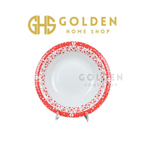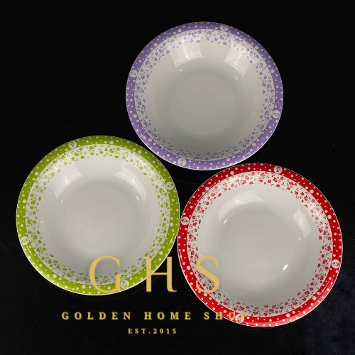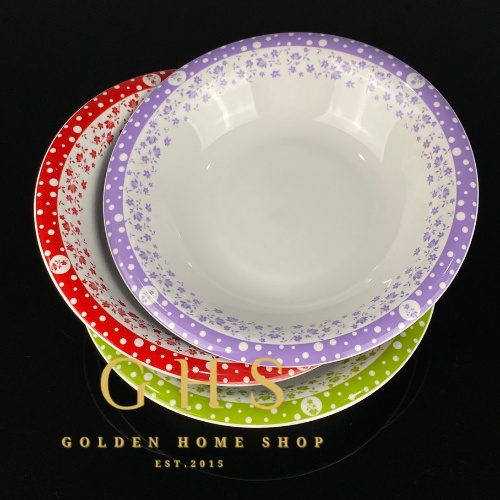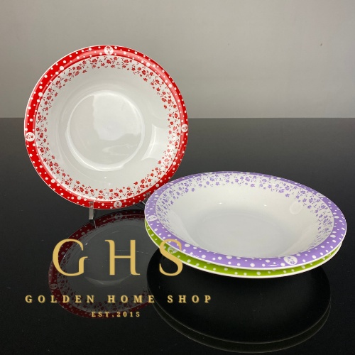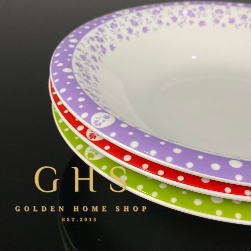 GHS - Piring Makan Omega Motif Polkadot Ungu Hijau Merah Dessert Spaghetti Plate