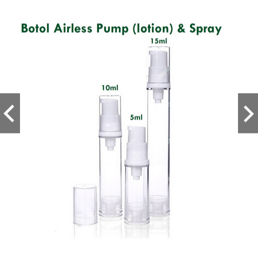 BOTOL 15ML AIRLESS SPRAY PUMP LOTION 10ML VACUM SERUM REFILL 5ML PARFUM HANDSANITIZER TU