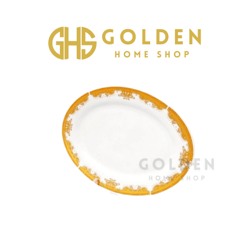 GHS - Piring Saji Oval Keramik 32 CM Mahkota Steak Serving Plate