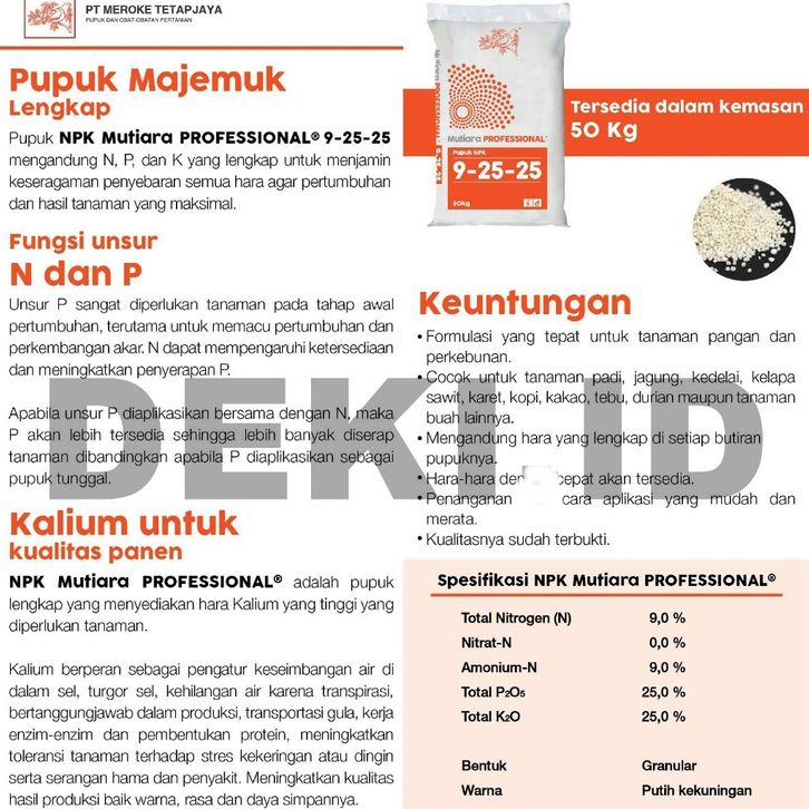 Pupuk NPK Professional gr Repack 9 25 25 Mutiara Meroke Profesional Nutrisi Pembuahan Tanaman
