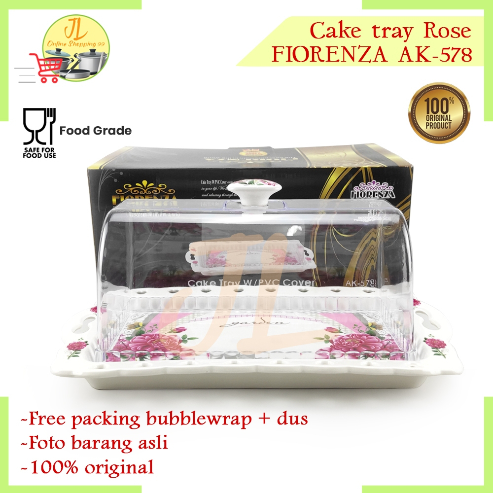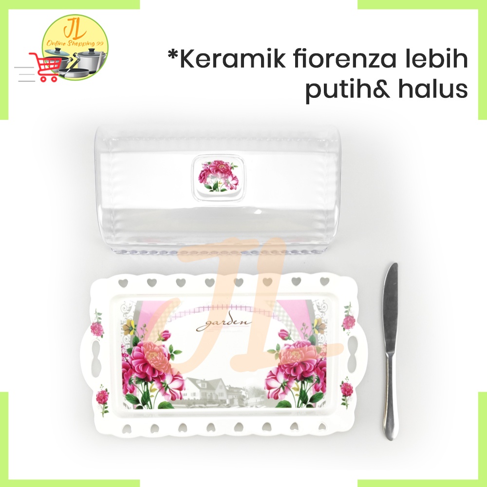 FIORENZA Bread Plate ceramic (Tempat Roti) Dengan Penutup AK-578 / Cake tray rose