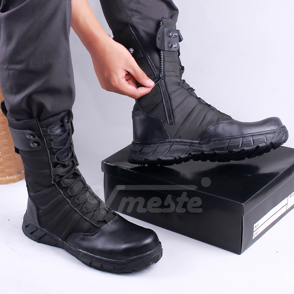 VMESTE - Sepatu PDL Ninja Titan TNI Polri Brimob Security Satpam Kulit Sintetis Hitam Doff