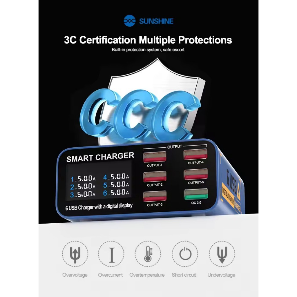 ADAPTOR CHARGER 6 PORT USB 40W QC 3.0 FAST CHARGING - SUNSHINE SS-304Q ORIGINAL