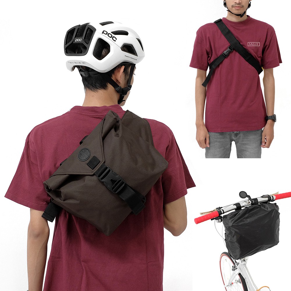 SALLY JAGGER Brown - Tas handlebar sling bag untuk sepeda lipat / sepeda touring / mtb / scooter