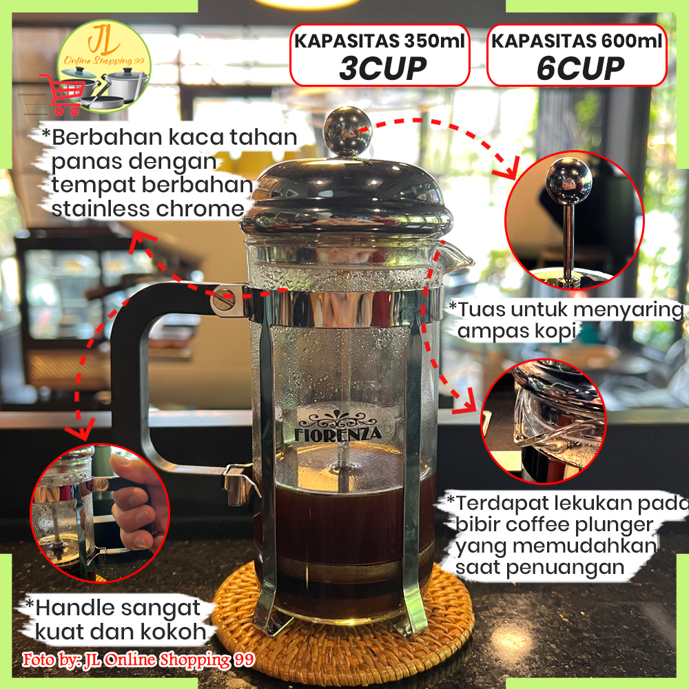FIORENZA coffee plunger 350ml/600ml / French press tea / coffee /saringan kopi / tempat kopi