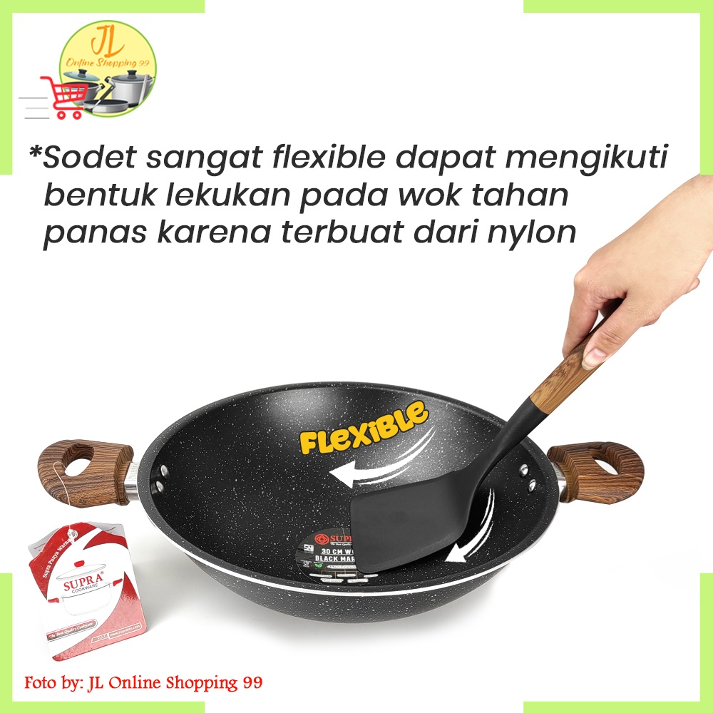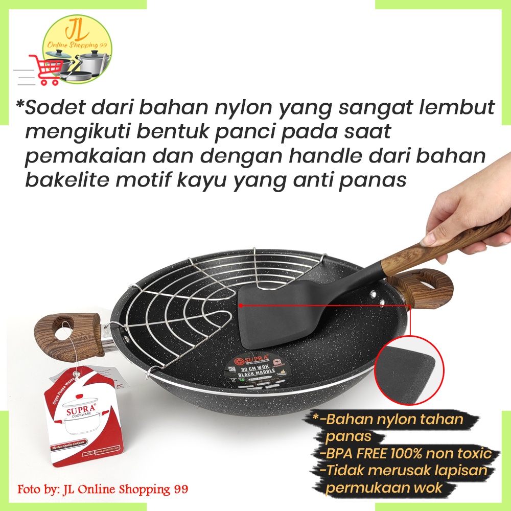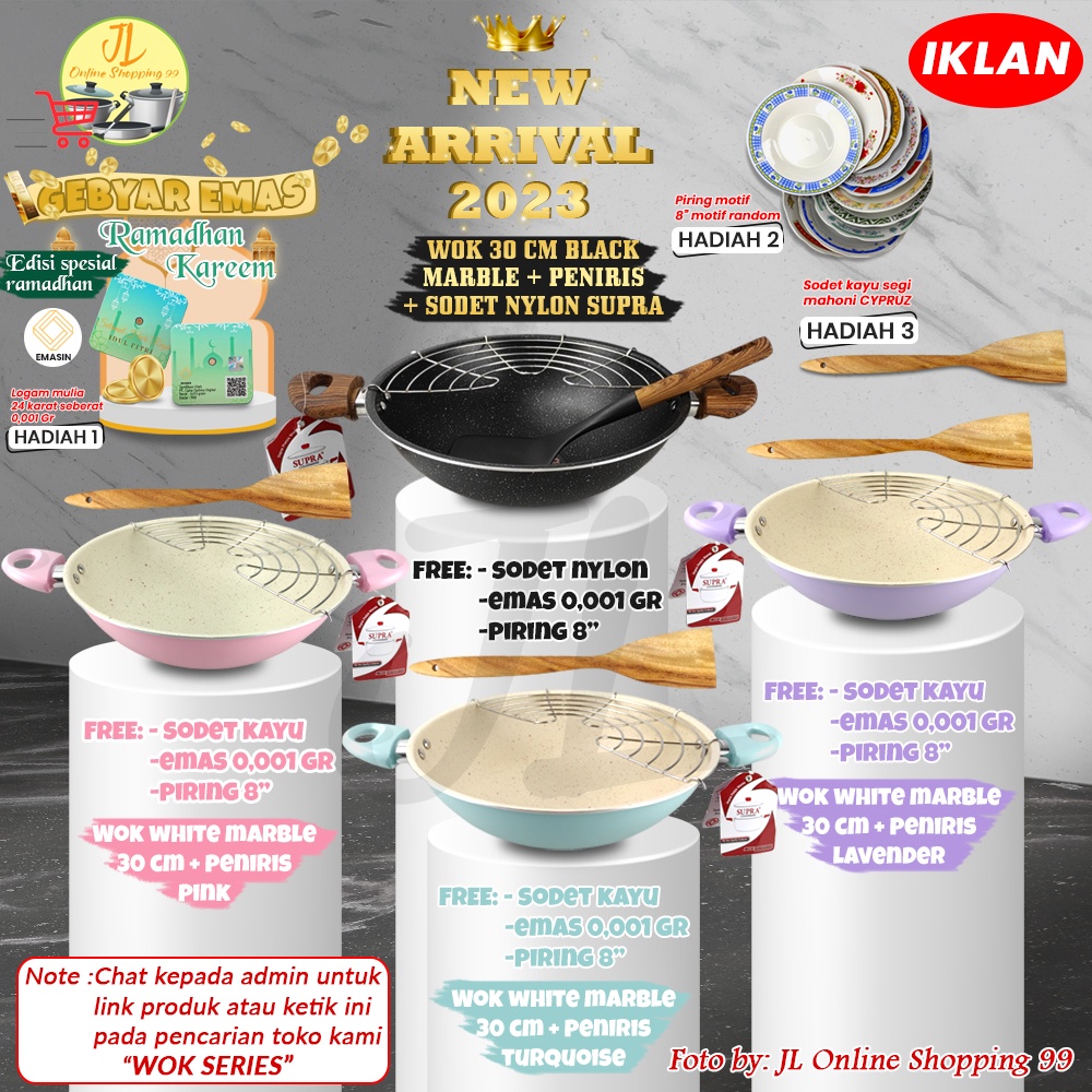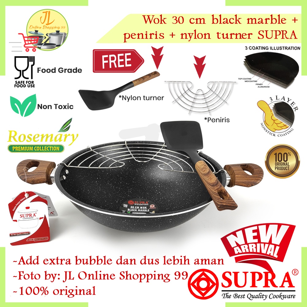 SUPRA Wok set 30cm black marble + peniris + sodet / wajan kuping kuali penggorengan anti lengket