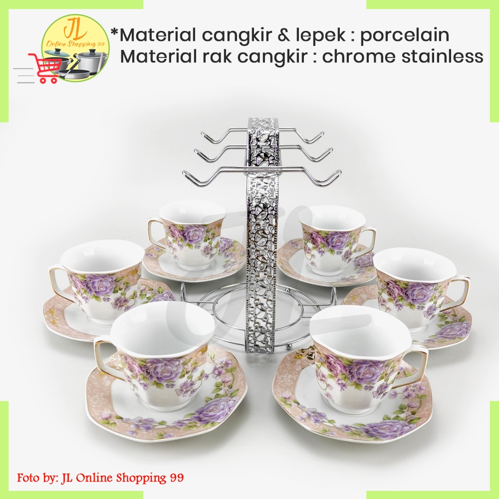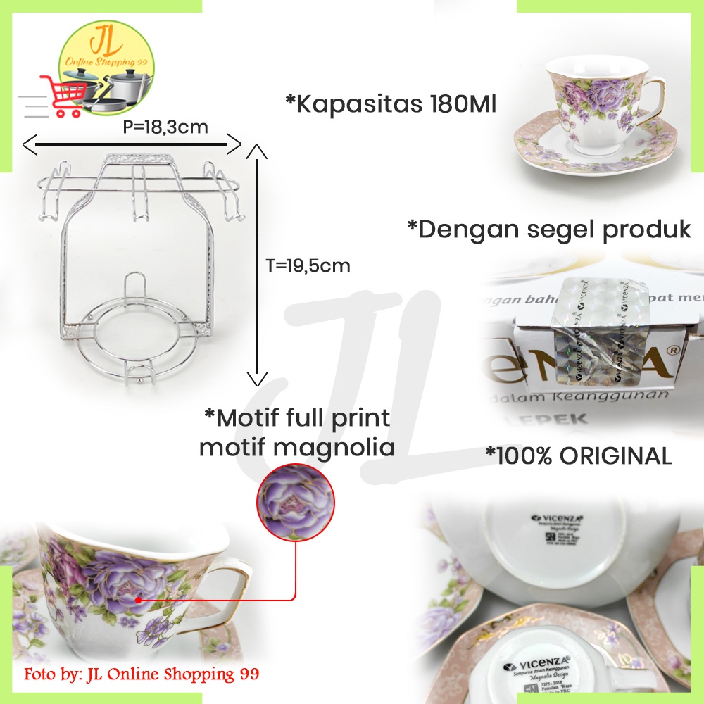 Vicenza Cangkir set + rak C-78-1 motif Magnolia / Tea set / cangkir set mewar original