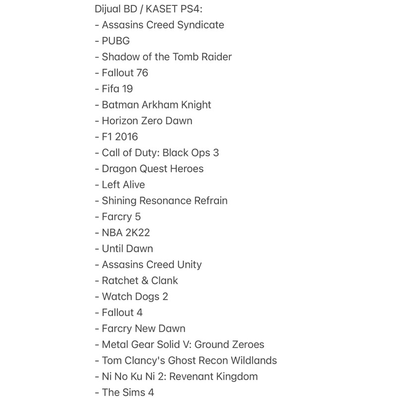 BD / KASET PS4 SECOND (SATUAN / BORONGAN)