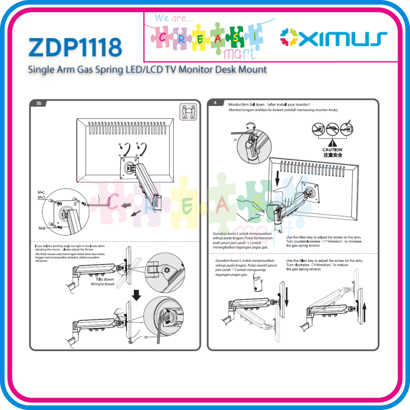 Oximus ZDP1118 Bracket Meja Single Arm Gas Spring Desk Mount Monitor/TV/LCD/LED VESA Maximal 100x100