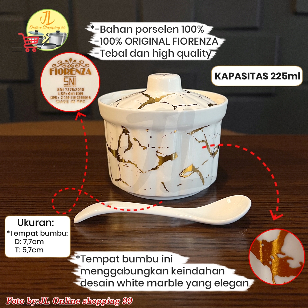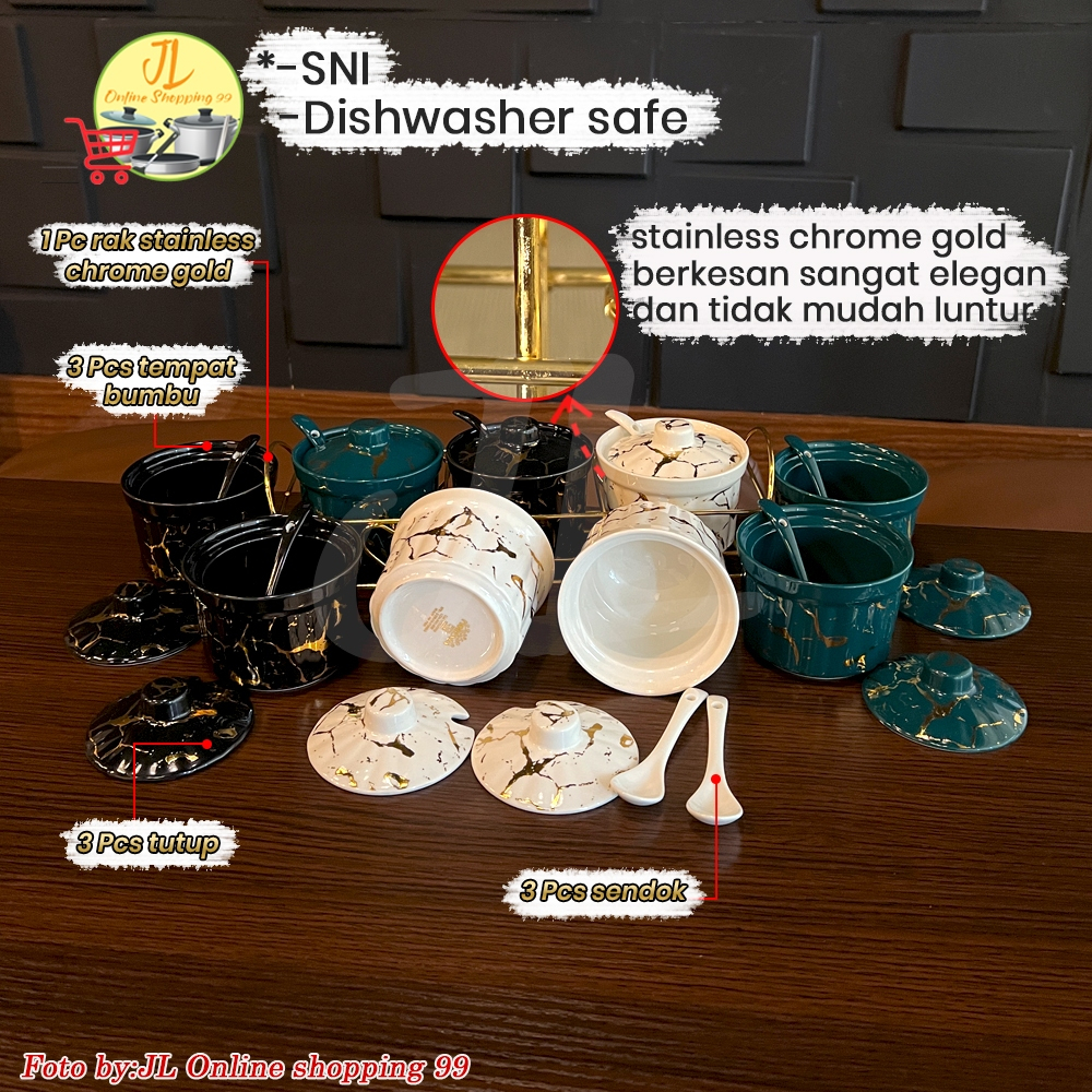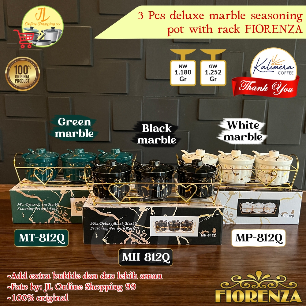 FIORENZA Rak set tempat bumbu isi 3 motif marble series + rak + tutup + sendok keramik 812Q