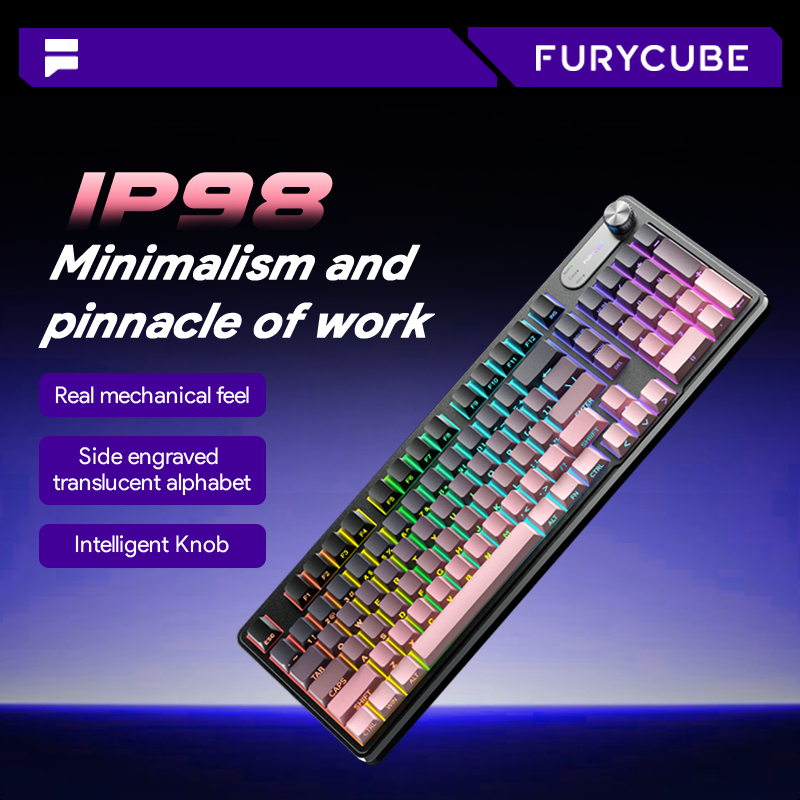 FURYCUBE IP98 Membrane Keyboard Type C Waterproof Keyboar Gaming Office Gradient With Knobs Kibot RGB Mechanical Feel