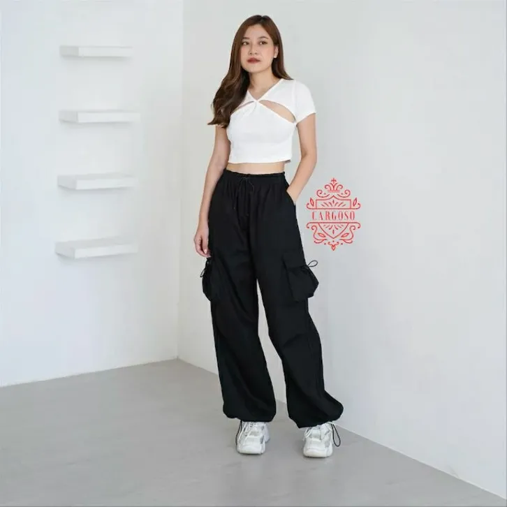 CELANA CARGO WANITA HIGHWAIST LOOSE PANTS TROUSER KOREAN STYLE - CELANA GUNUNG WANITA