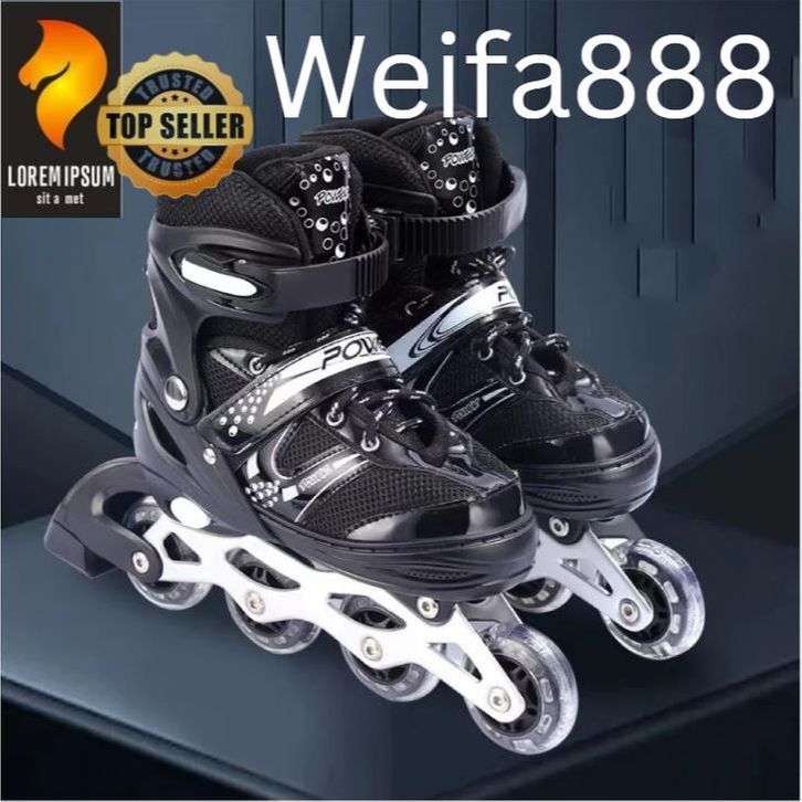Skate Inline Sepatu Roda Hitam Anti Selip PU Terbaru Skate Inline Roda Depan Menyala LED