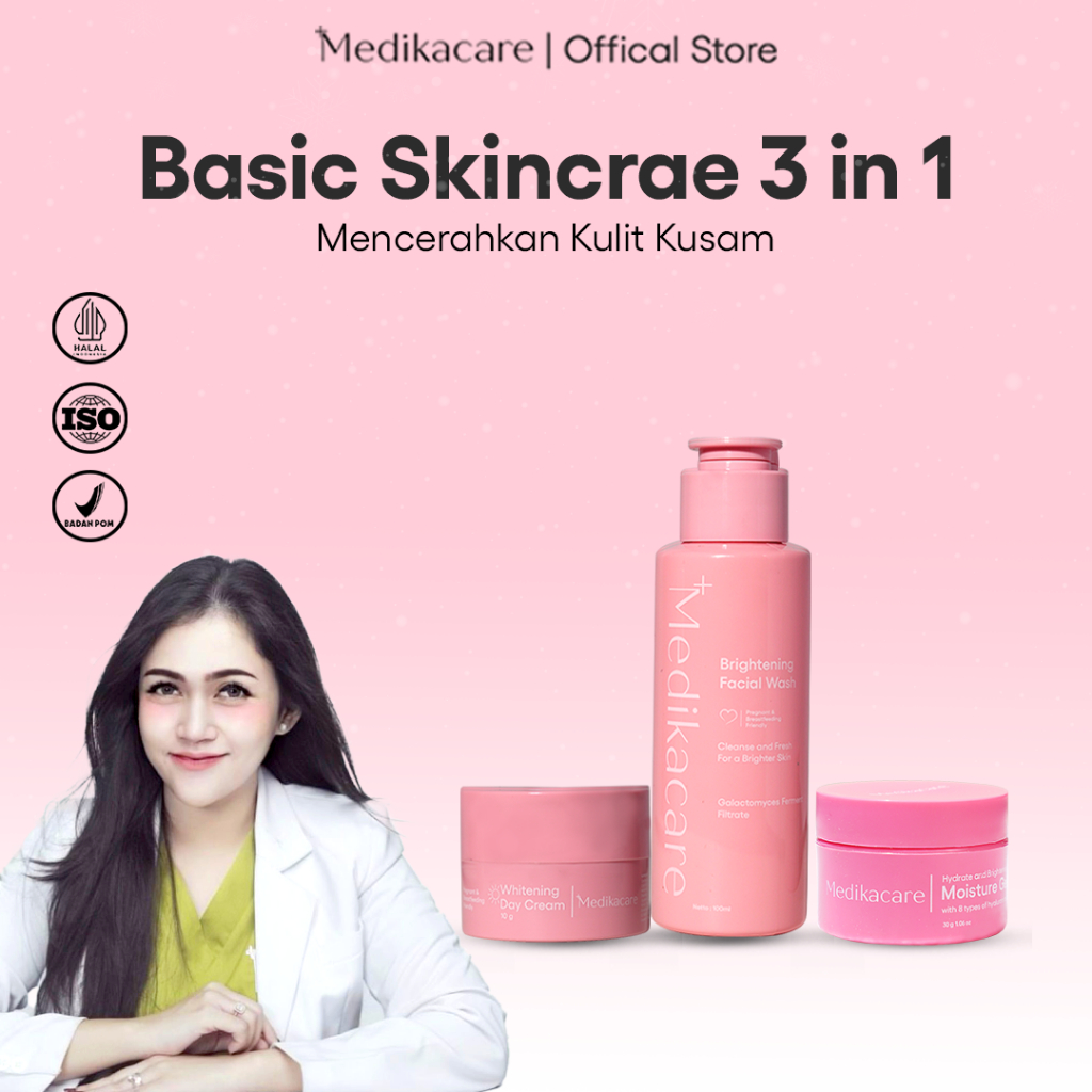 Medika Care Basic Skincare 3 IN 1, Mencerahkan kulit kusam (Facial wash + Moisturizer + Sunscreen)